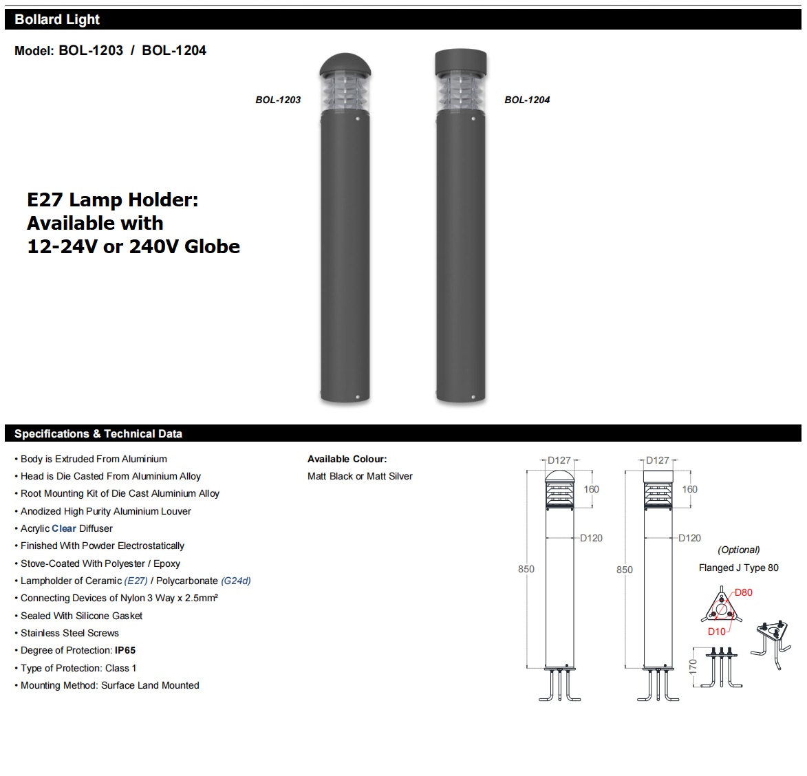 YLI Bollard BOL1203 and BOL1204