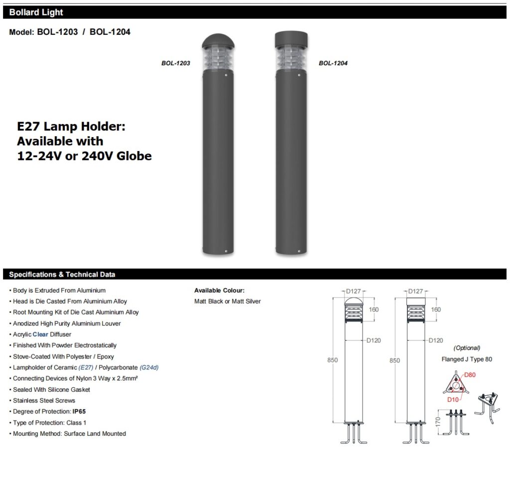 LED Bollard : Model: BOL1203 and BOL-1204 in 850mm Height